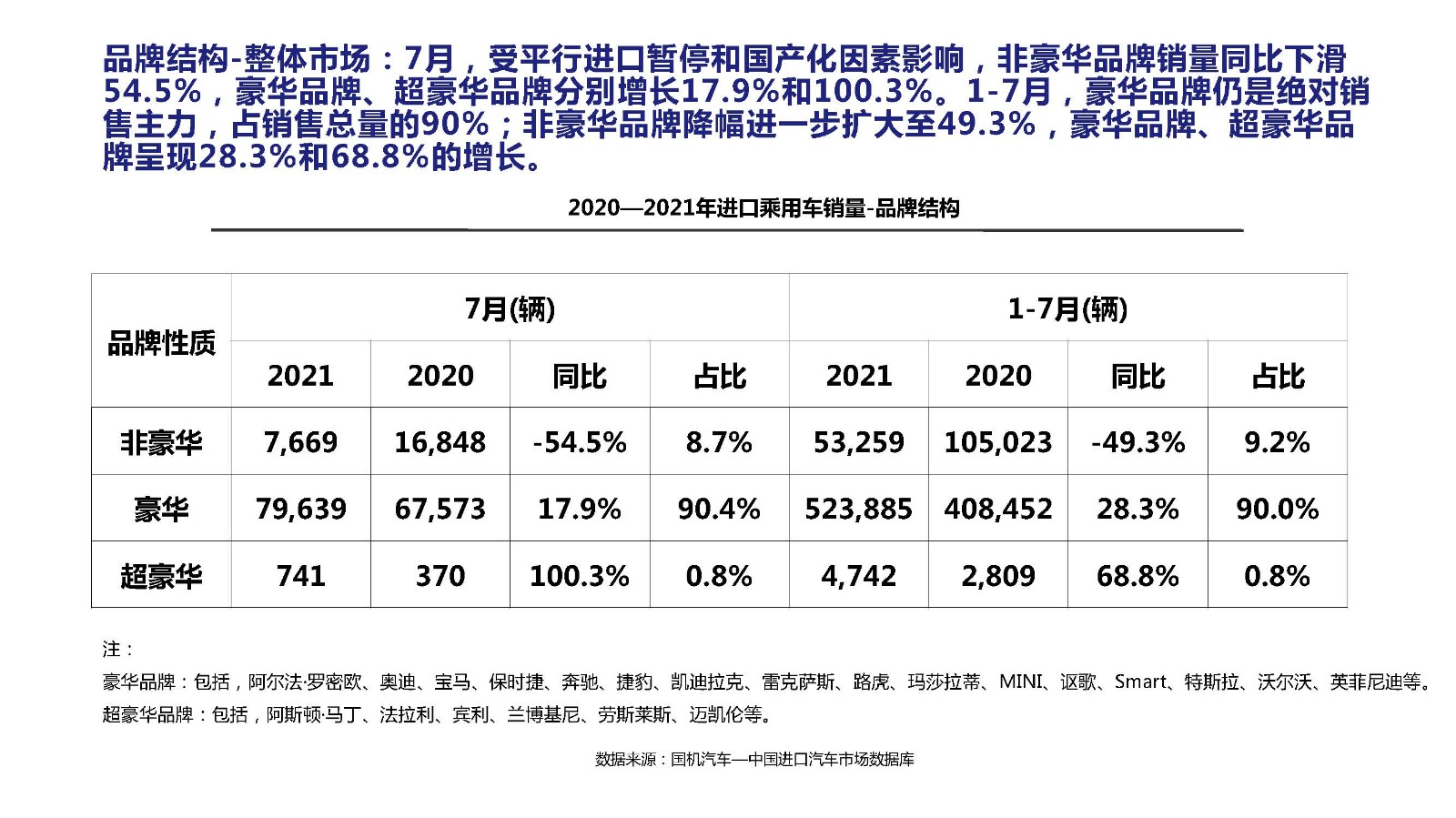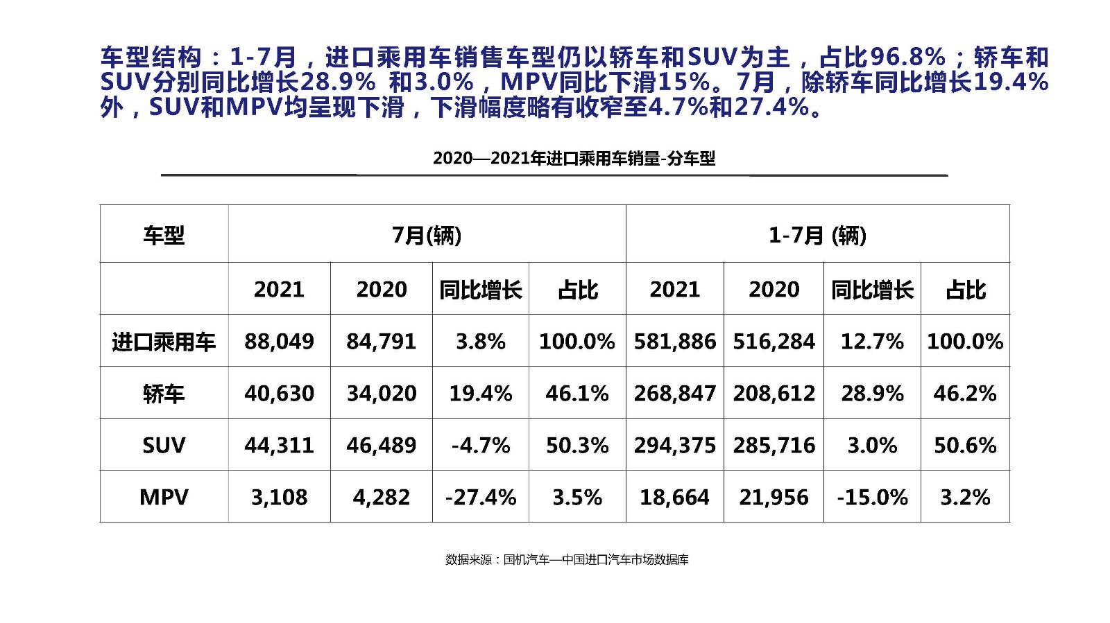 2021年7月中国进口汽车市场情况