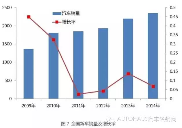 根据数据统计,我国2014年汽车保有量为1.54亿辆。结合图6图7我们可以得出车龄在3年到7年之间符合二手车质保服务车龄范围的车辆数量约为6800万辆。目前国内二手车质保的渗透率约为5%左右,若按照每辆二手车质保每年服务费1500元计算,则2014年二手车质保服务的市场规模超过50亿元。随着国内汽车保有量不断增加、二手车保有量的不断增长、二手车质保渗透率的提升,二手车质保服务的市场规模将迅速扩大。